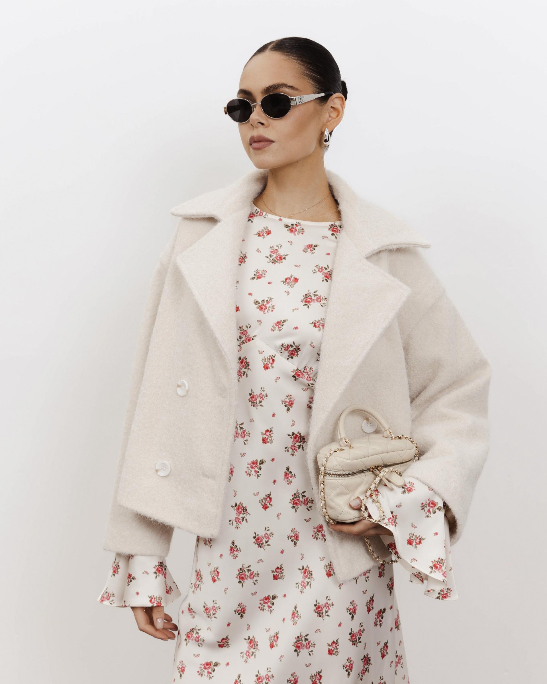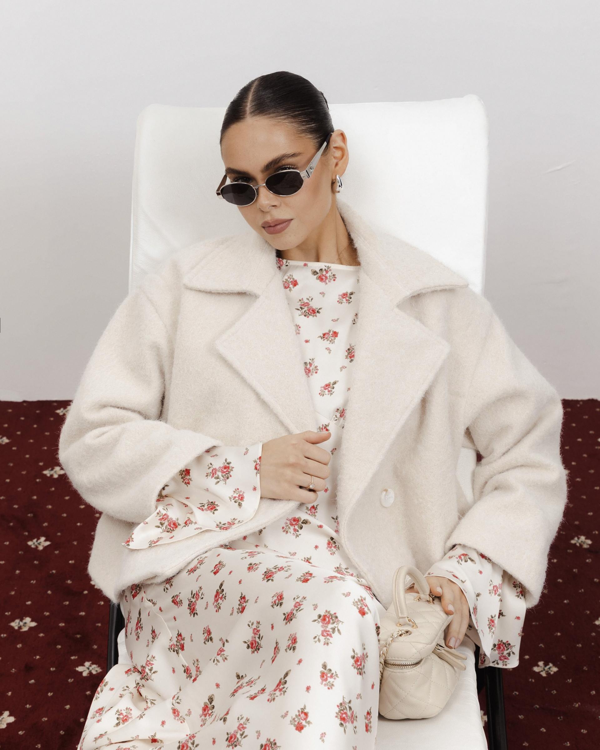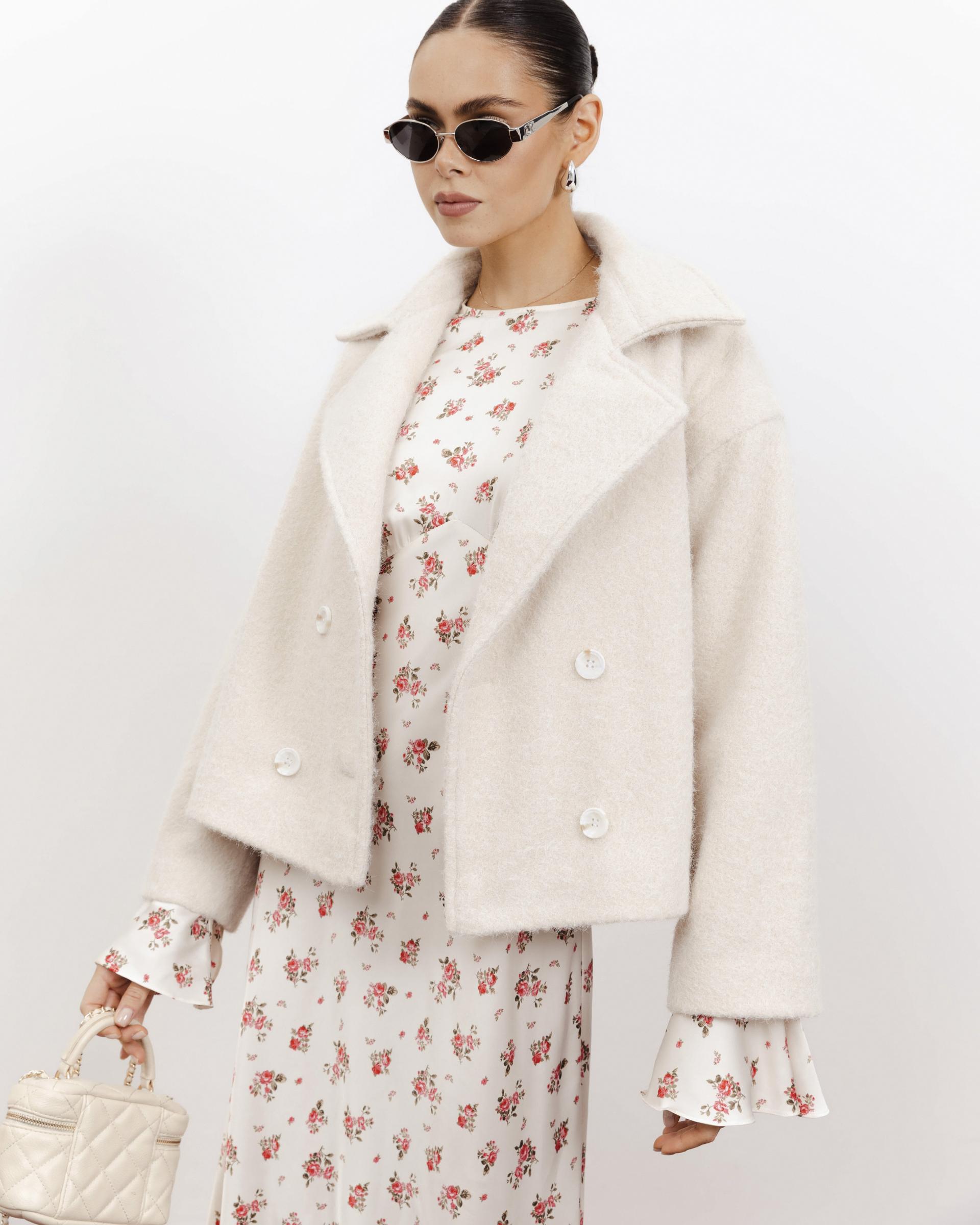 Вкорочено оверсайз пальто з букле у молочному відтінку