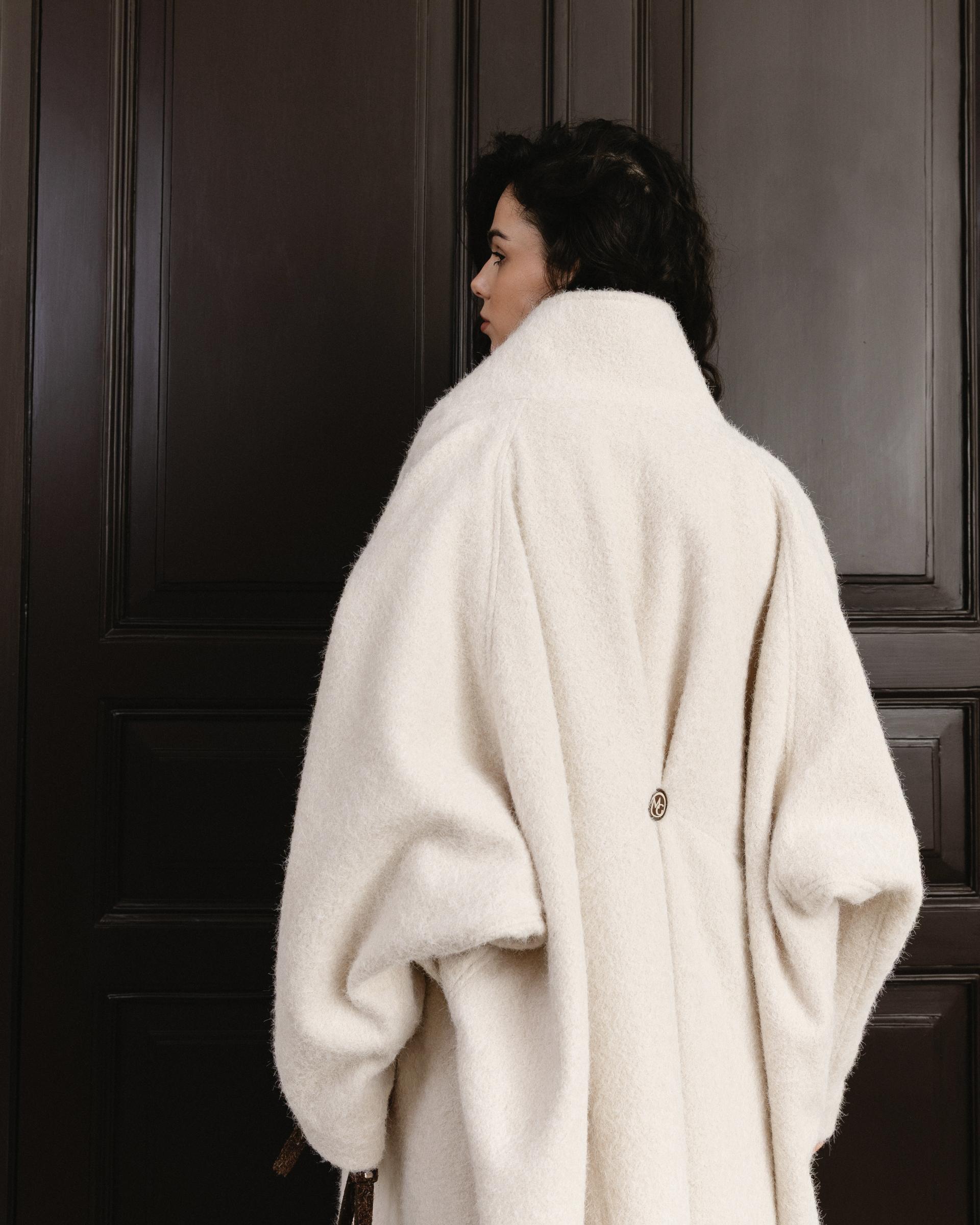 Пальто, що поєднує в собі архітектурність ліній і сучасну елегантність.