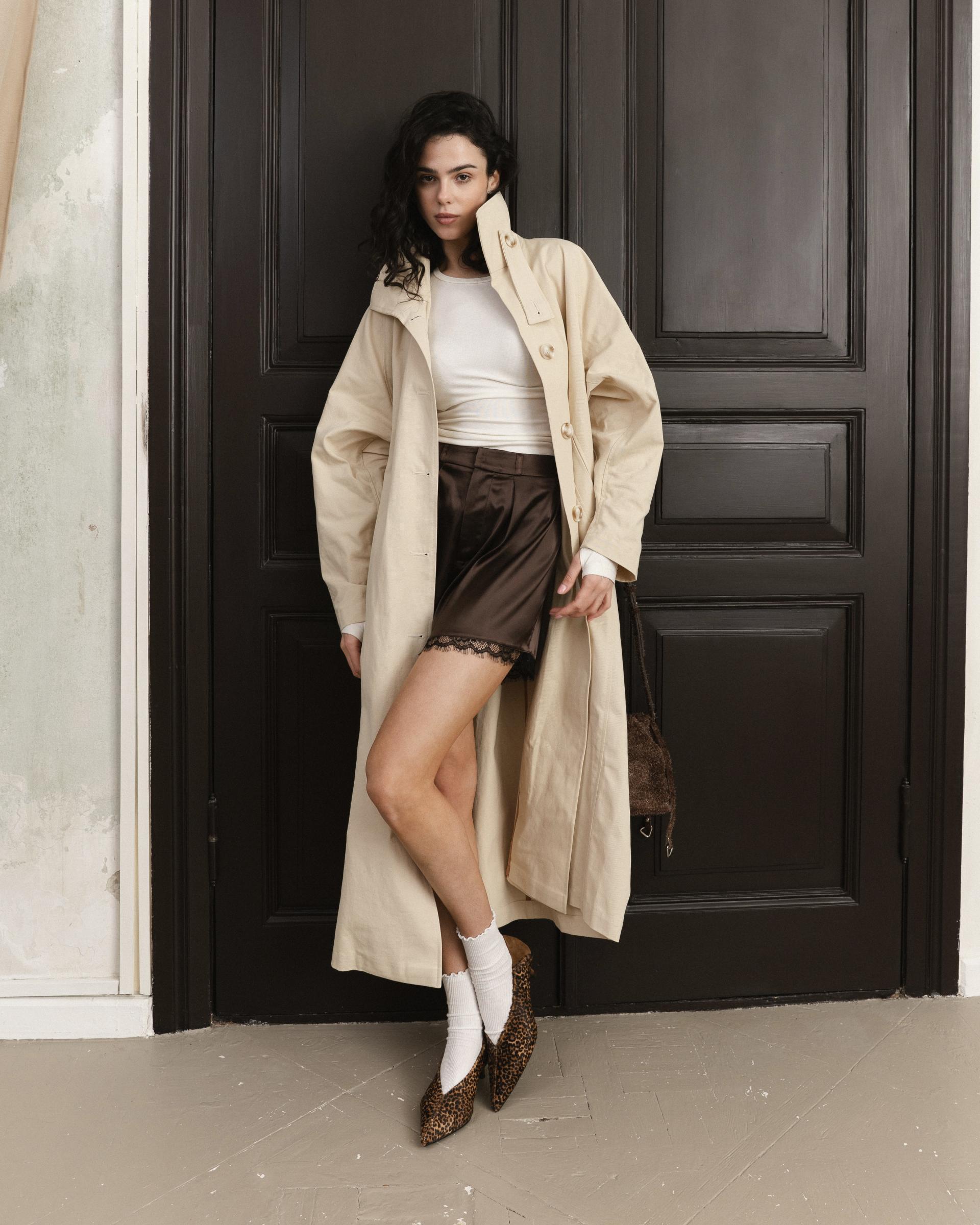 Тренч тримає силует, додає зібраності образу і не потребує зайвих зусиль у стилізації. Натуральна бавовна комфортна в носінні, добре тримає форму і підходить для міжсезоння. Всередині - контрастна обробка. Маленький, але такий стильний акцент.